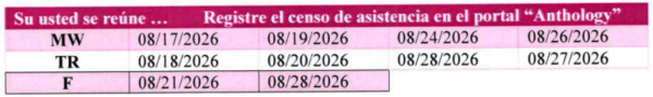 - viernes, 29 de agosto: Fecha límite toma de censo para detenn inación “No Show”
