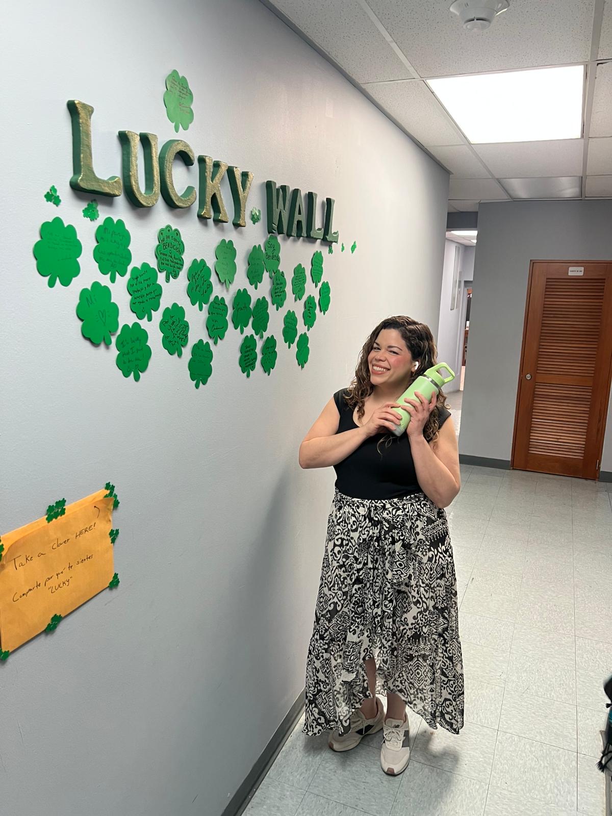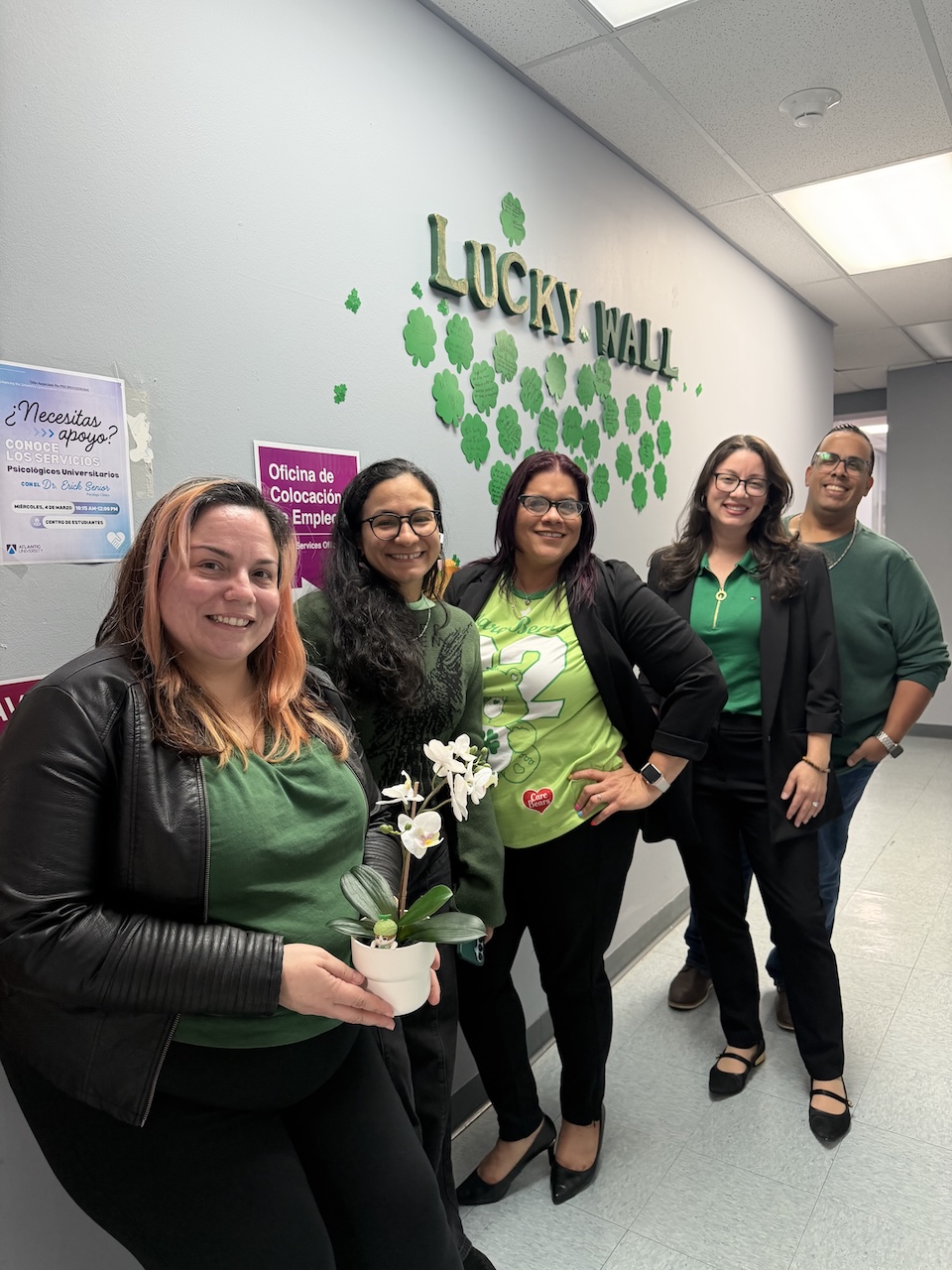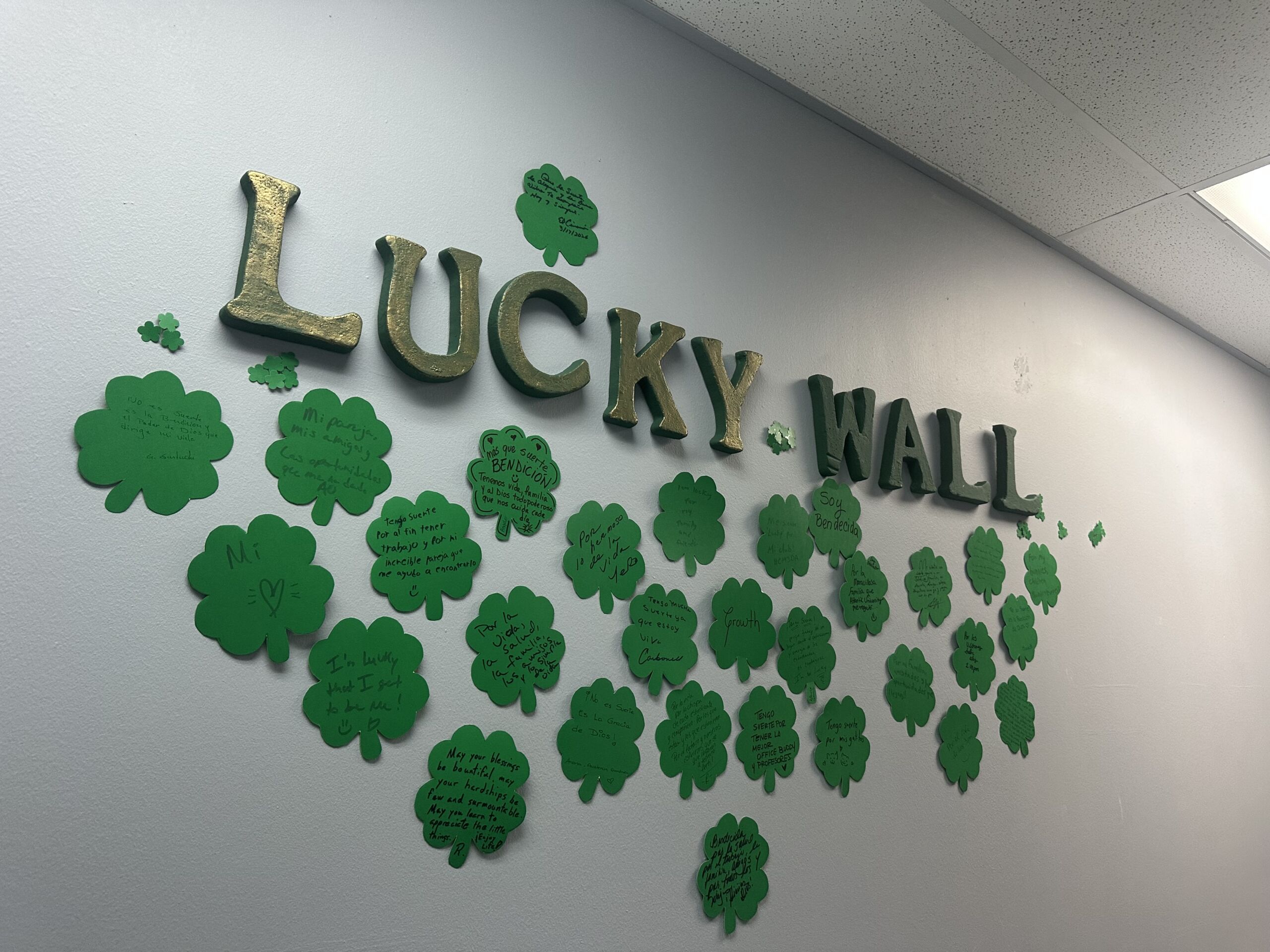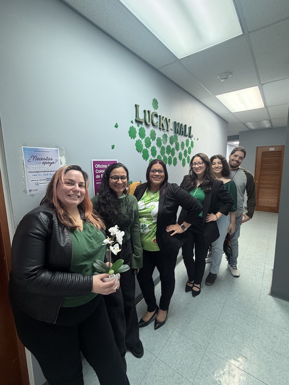La iniciativa invitó a los estudiantes a vestirse de color verde y visitar el pasillo de Consejería, ubicado en el Edificio E-2, donde pudieron compartir mensajes sobre por qué se sienten “lucky”. Esta dinámica permitió crear un espacio de expresión personal, reflexión y conexión entre los participantes.