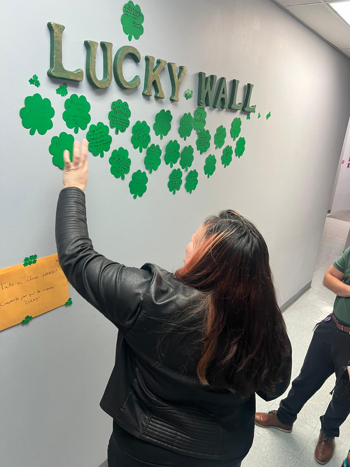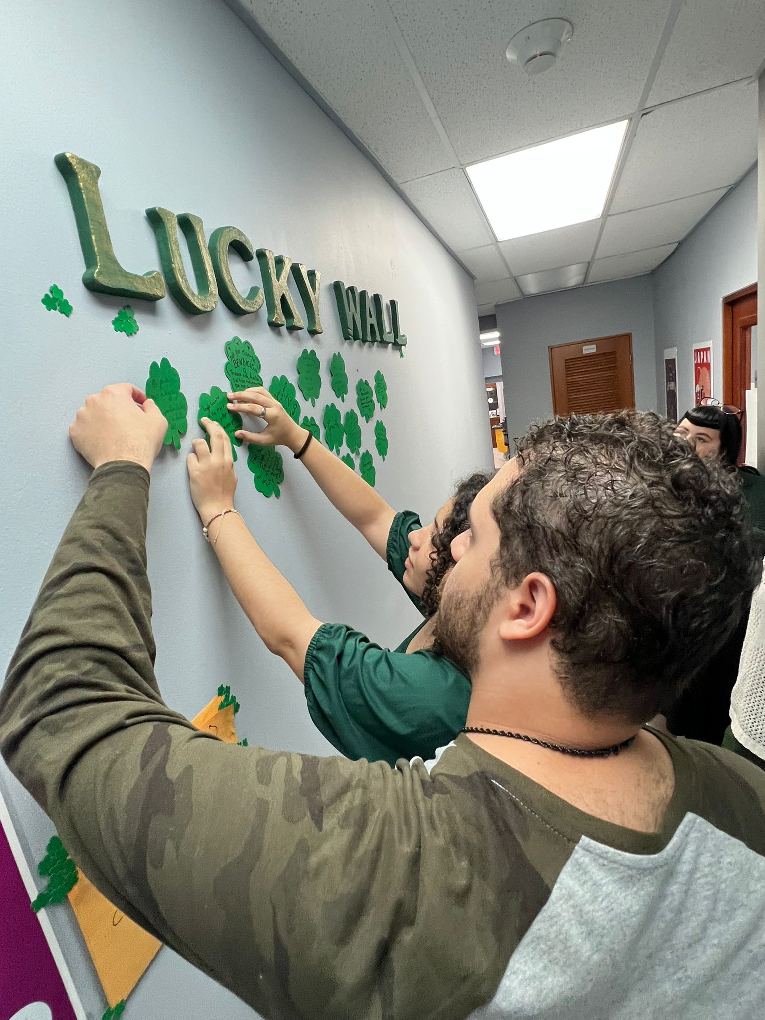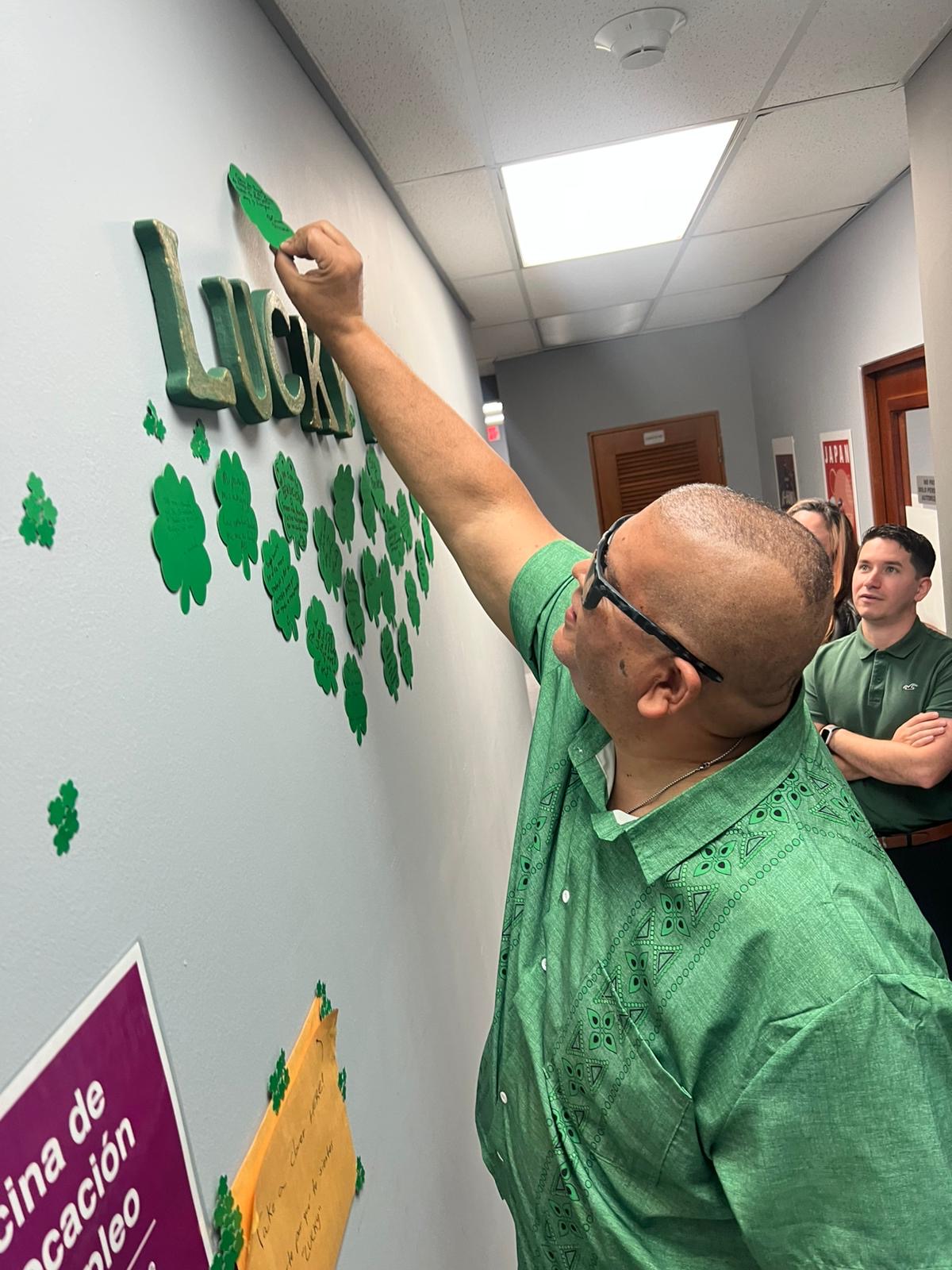 La iniciativa invitó a los estudiantes a vestirse de color verde y visitar el pasillo de Consejería, ubicado en el Edificio E-2, donde pudieron compartir mensajes sobre por qué se sienten “lucky”. Esta dinámica permitió crear un espacio de expresión personal, reflexión y conexión entre los participantes.
