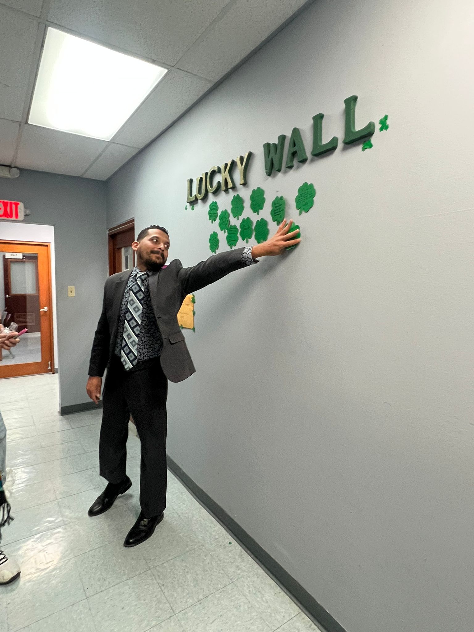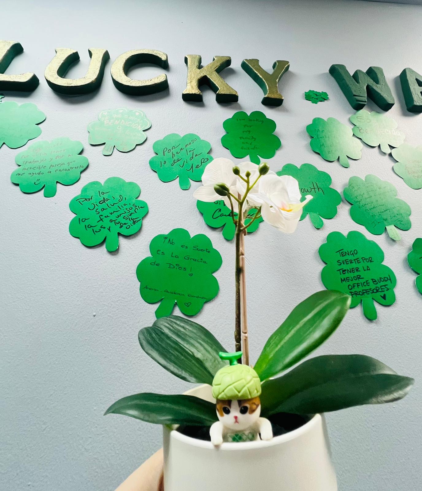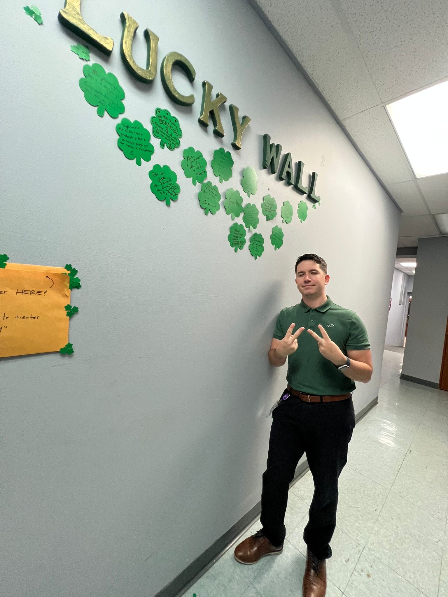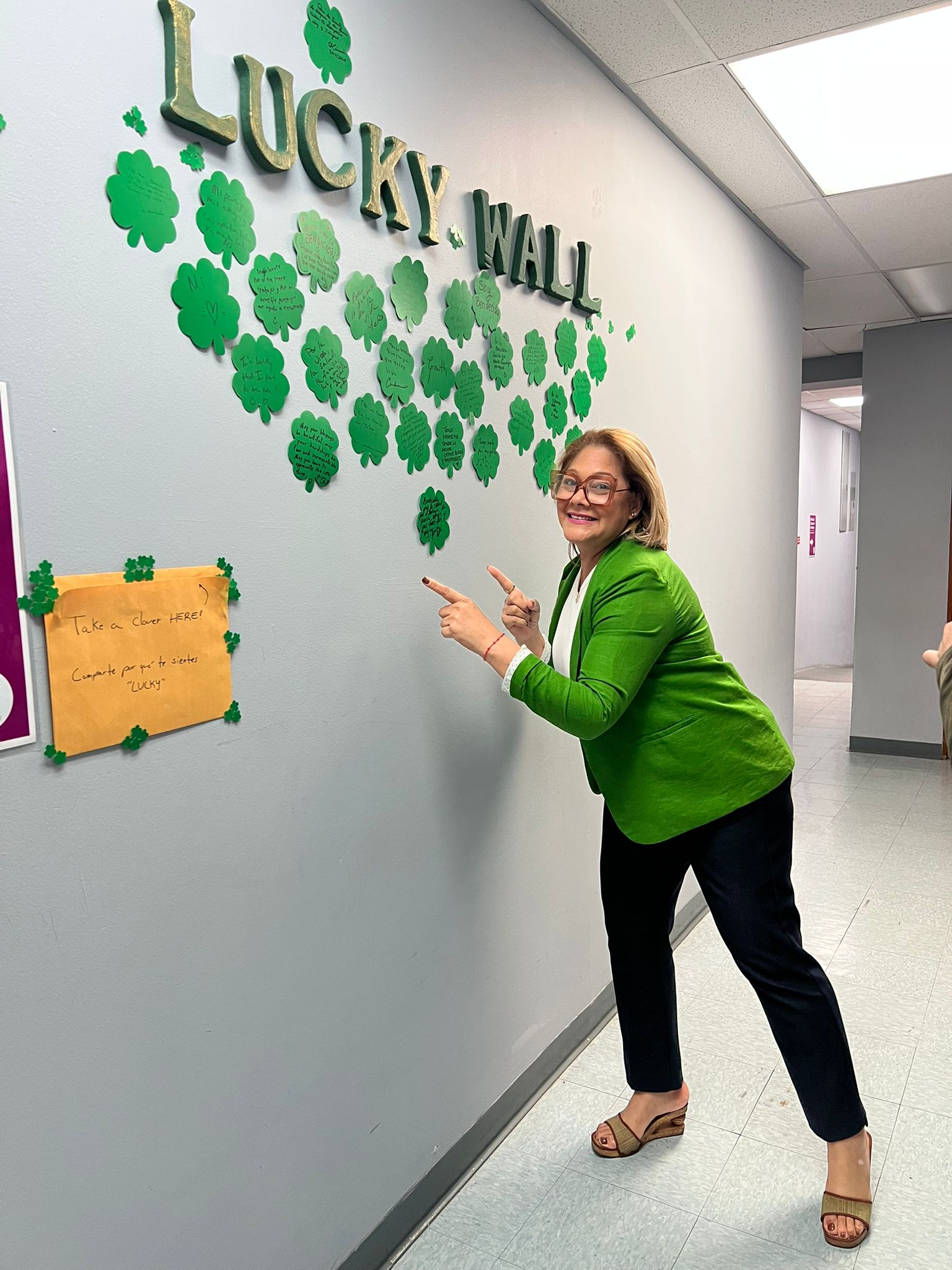 La iniciativa invitó a los estudiantes a vestirse de color verde y visitar el pasillo de Consejería, ubicado en el Edificio E-2, donde pudieron compartir mensajes sobre por qué se sienten “lucky”. Esta dinámica permitió crear un espacio de expresión personal, reflexión y conexión entre los participantes.