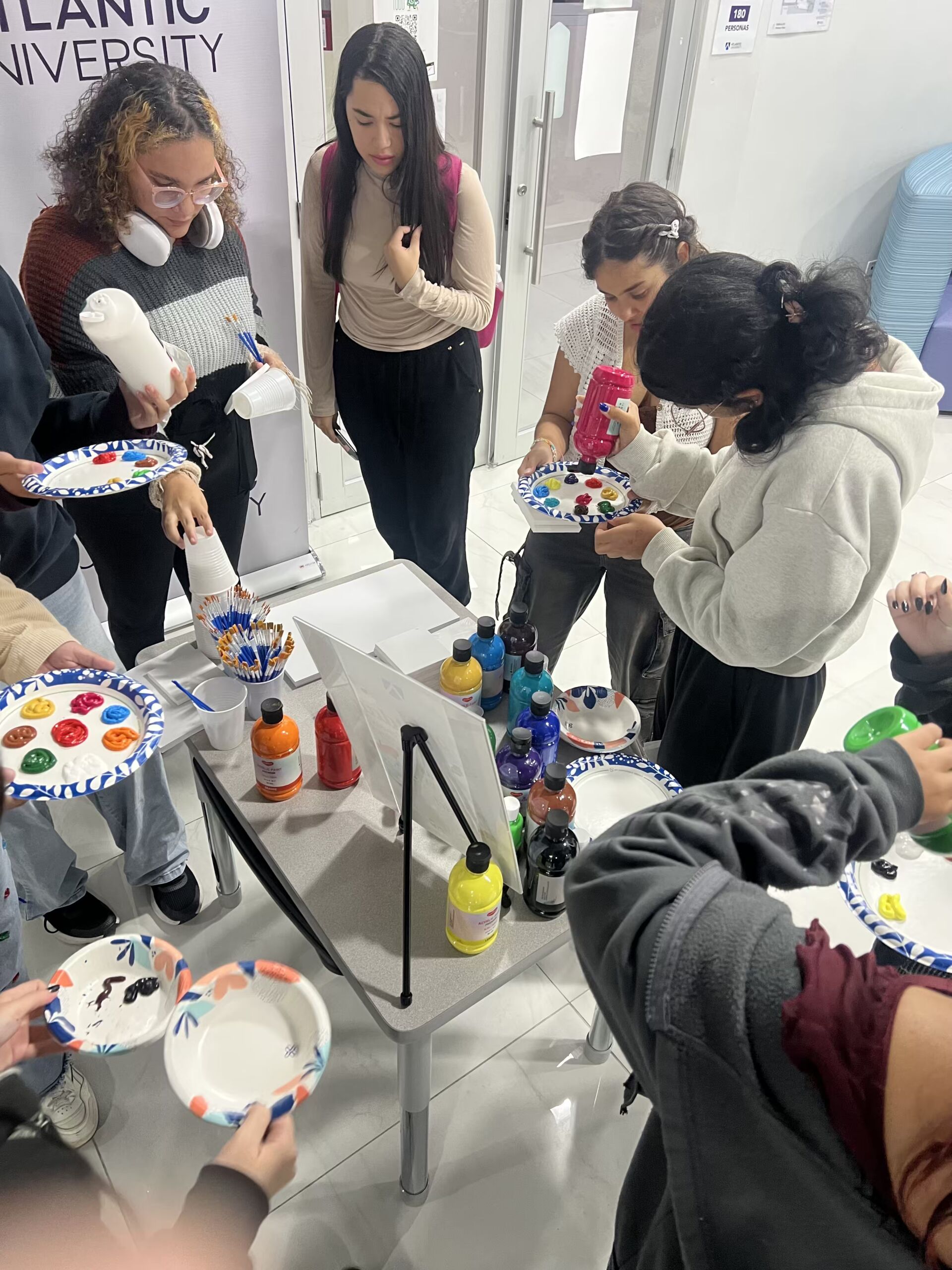 Más allá de la pintura, la actividad sirvió como un punto de encuentro para compartir, socializar y fortalecer el sentido de comunidad entre los estudiantes. La participación espontánea y el entusiasmo demostrado reflejan la importancia de integrar espacios de bienestar y creatividad en la vida universitaria.