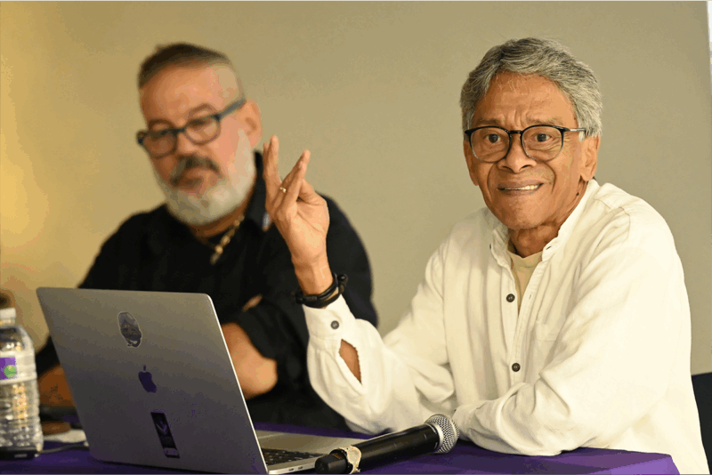Durante la actividad, ambos diseñadores exploraron la historia y la evolución del cartel como medio cultural y de servicio comunitario, presentando ejemplos emblemáticos de ambas islas. A través de un diálogo cercano y enriquecedor, destacaron cómo el diseño gráfico funciona como puente entre identidades, memorias colectivas y luchas sociales compartidas.
